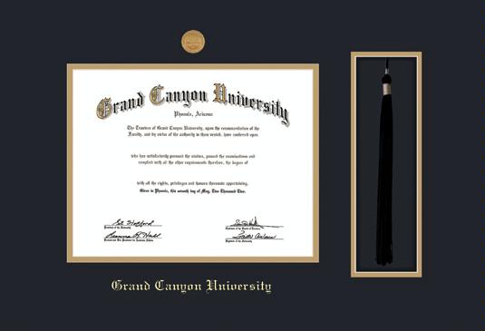 Grand Canyon University Diploma - BA/MA (7/16 to Present) Frame with Medallion and Tassel Cut-out and Black and Gold Double Mat and Gold Embossing