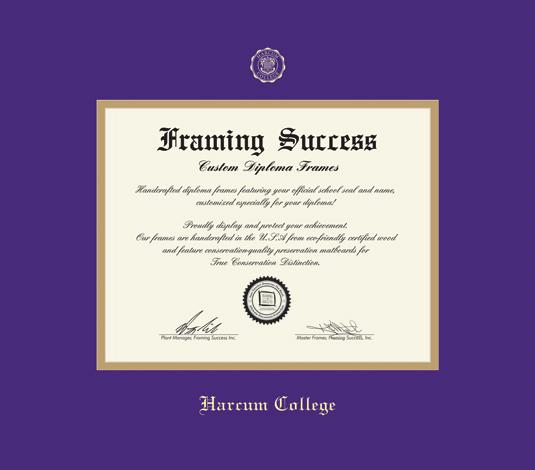 Harcum College Diploma (2017 to Present) Frame with Purple and Gold Double Mat and Gold Embossing