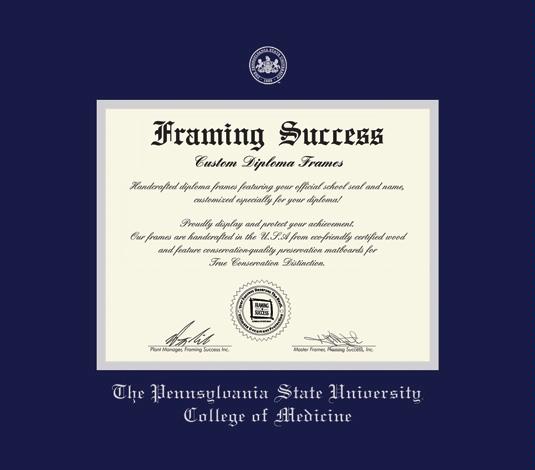Pennsylvania State University Diploma - PA Frame with Navy Blue and Silver Double Mat and Silver Embossing