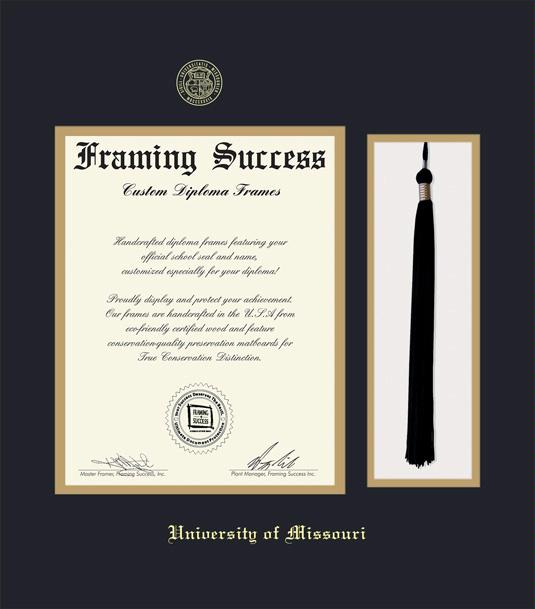 University of Missouri-Columbia Diploma (7/17 to Present) Frame with Tassel Cut-out and Black and Gold Double Mat and Gold Embossing