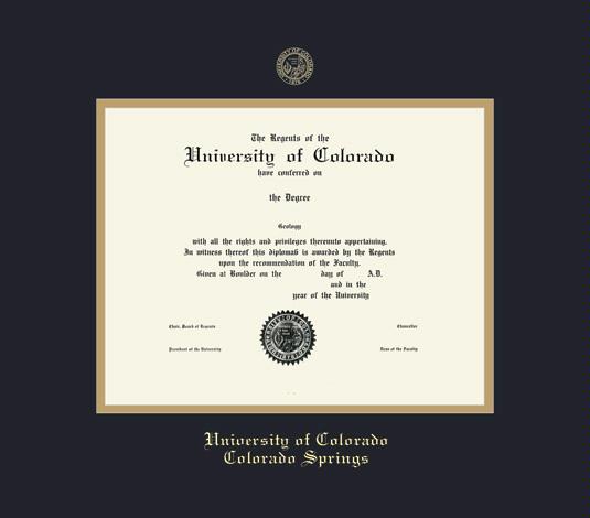 University of Colorado- Colorado Springs Diploma - Upgraded Size (14x16) (7/17 to Present) Frame with Black and Gold Double Mat and Gold Embossing