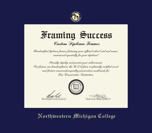 Northwestern Michigan College Diploma - BA Maritime Academy and Marine Tech Frame with Navy Blue Mat and Gold Embossing
