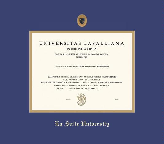 La Salle University Diploma - Doc (7/17 to Present) and BA/MA (7/17-2023) Frame with Medallion and Royal Blue and Gold Double Mat and Gold Embossing