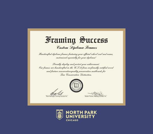 North Park University Diploma (7/17 to Present) Frame with Royal Blue and Gold Double Mat and Gold Embossing