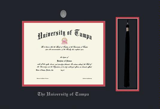 University of Tampa Diploma - BA/MA (11/14 to Present) Frame with Medallion and Tassel Cut-out and Black and Red Double Mat and Silver Embossing