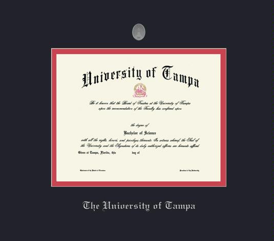 University of Tampa Diploma - BA/MA (11/14 to Present) Frame with Medallion and Black and Red Double Mat and Silver Embossing