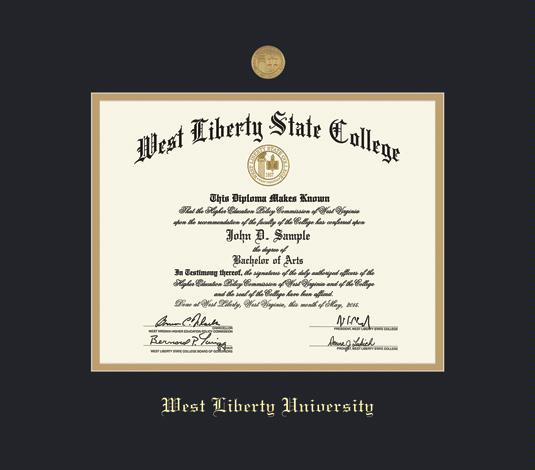 West Liberty University Diploma - BA (5/09 to Present) Frame with Medallion and Black and Gold Double Mat and Gold Embossing
