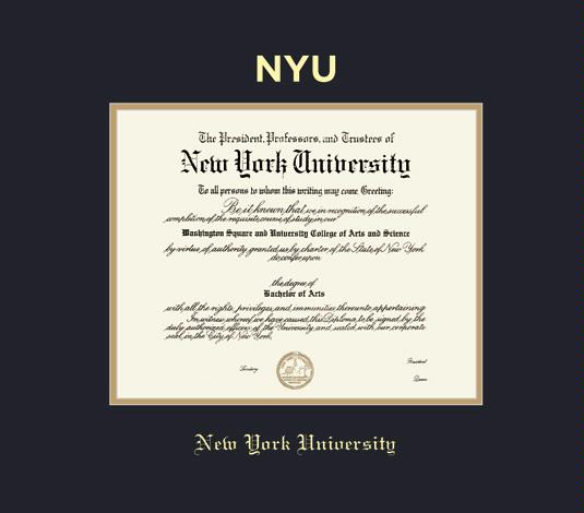 New York University Diploma with Wordmark Frame with Black and Gold Double Mat and Gold Embossing