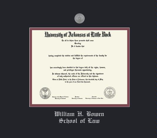 University of Arkansas at Little Rock Diploma - Law (8/17 to Present) Frame with Medallion and Black and Maroon Double Mat and Silver Embossing