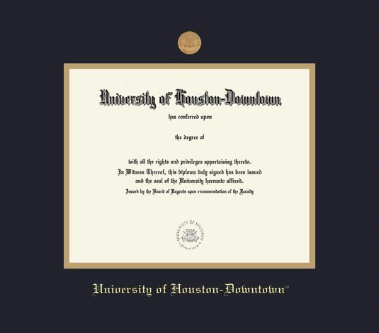 University of Houston-Downtown Diploma Frame with Medallion and Black and Gold Double Mat and Gold Embossing