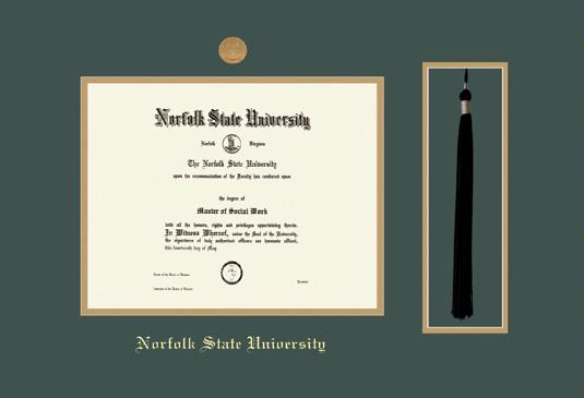 Norfolk State University Diploma - BA/PhD Frame with Medallion and Tassel Cut-out and Green and Gold Double Mat and Gold Embossing