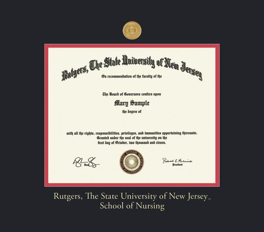 Rutgers University Diploma - BA School of Nursing (7/14 to Present) Frame with Medallion and Black and Red Double Mat and Gold Embossing