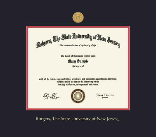 Rutgers University (New Brunswick) Diploma - BA and (Pre 7/14) MA (measures 8.5x11) Frame with Medallion and Black and Red Double Mat and Gold Embossing