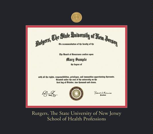 Rutgers University Diploma - Associate/BS-School of Health Professions Frame with Medallion and Black and Red Double Mat and Gold Embossing