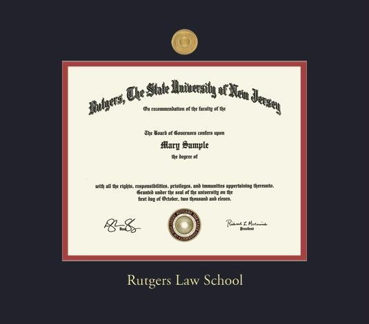 Rutgers Law School Diploma (2016 to Present) Frame with Medallion and Black and Red Double Mat and Gold Embossing