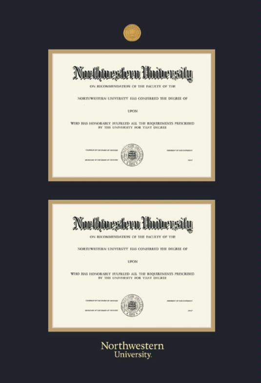 Northwestern University Double Diploma - BA/MA (2018 to Present) Frame with Medallion and Black and Gold Double Mat and Gold Embossing