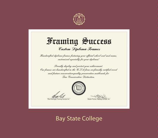 Bay State College Diploma Frame with Maroon and Cream Double Mat and Gold Embossing