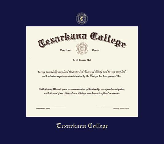 Texarkana College Diploma (8.5 x 11) Frame with Navy Blue Mat and Gold Embossing