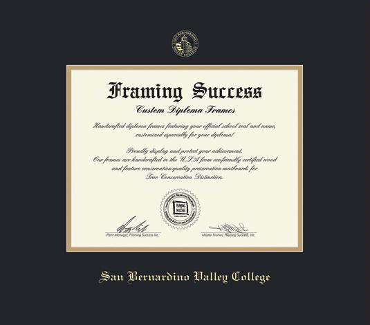 San Bernardino Valley College Diploma Frame with Black and Gold Double Mat and Gold Embossing