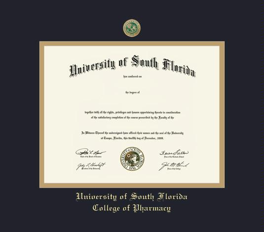 University of South Florida Diploma - Pharmacy Frame with Medallion and Black and Gold Double Mat and Gold Embossing