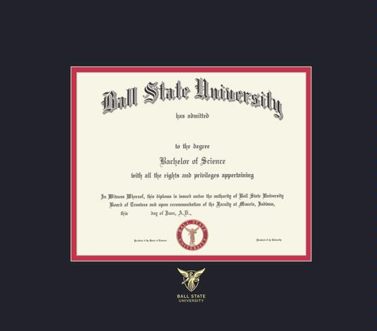 Ball State University Diploma - PhD (7/18 to Present) Frame with Black and Red Double Mat and Gold Embossing