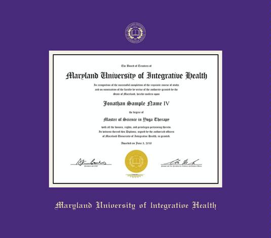 Maryland University of Integrative Health Diploma (8/18 to Present) Frame with Purple and Cream with Black Core Double Mat and Gold Embossing