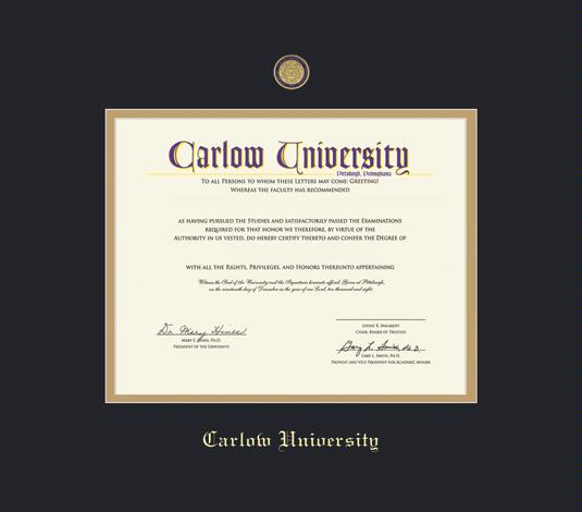 Carlow University Diploma - Doc (7/17 to Present) Frame with Colored Medallion and Black and Gold Double Mat and Gold Embossing
