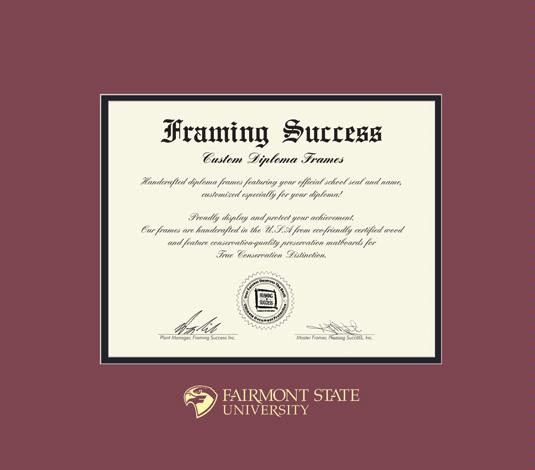 Fairmont State University Diploma (8/18 to Present) Frame with Maroon and Black Double Mat and Gold Embossing