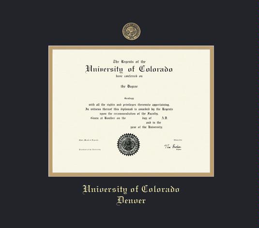 University of Colorado Denver Diploma Frame with Medallion and Black and Gold Double Mat and Gold Embossing