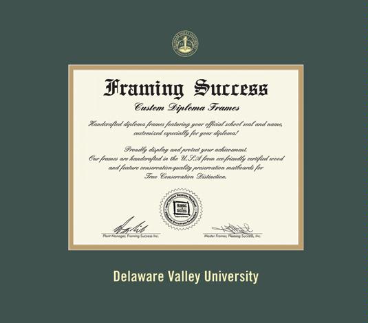 Delaware Valley University Diploma - EdD (9/18 to Present) Frame with Green and Gold Double Mat and Gold Embossing