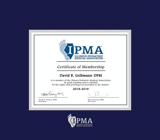 Illinois Podiatric Medical Association Certificate Frame with Navy Blue and Silver Double Mat and Silver Embossing