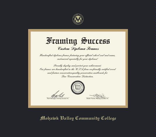 Mohawk Valley Community College Diploma Frame with Black and Gold Double Mat and Gold Embossing