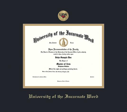 University of the Incarnate Word Diploma Frame with Wordmark Medallion and Black and Gold Double Mat and Gold Embossing
