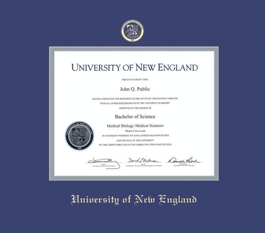 University of New England Diploma - Honorary Degree (2019 to Present) Frame with Royal Blue and Gray Double Mat and Gold Embossing