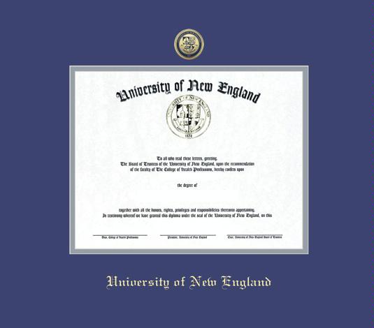 University of New England Diploma - BA/MA (2019 to Present) Frame with Colored Medallion and Royal Blue and Gray Double Mat and Gold Embossing