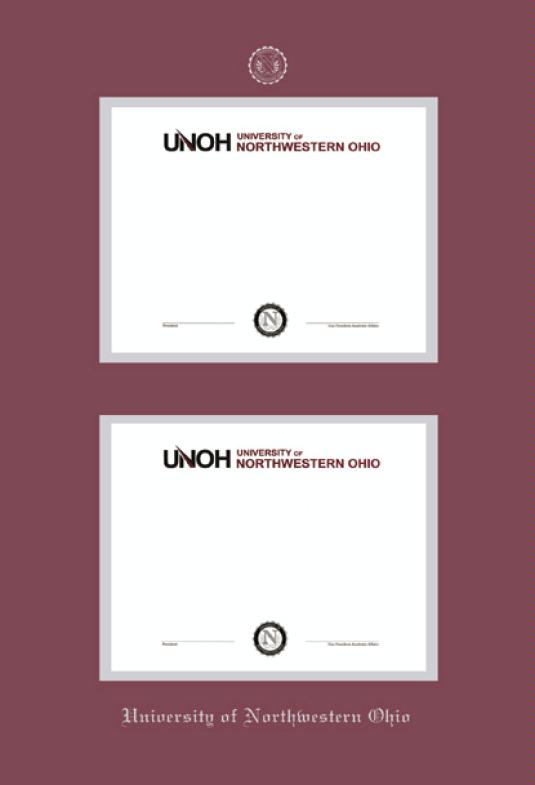 University of Northwestern Ohio Double Diploma - Associate/BA Frame with Maroon and Silver Double Mat and Silver Embossing