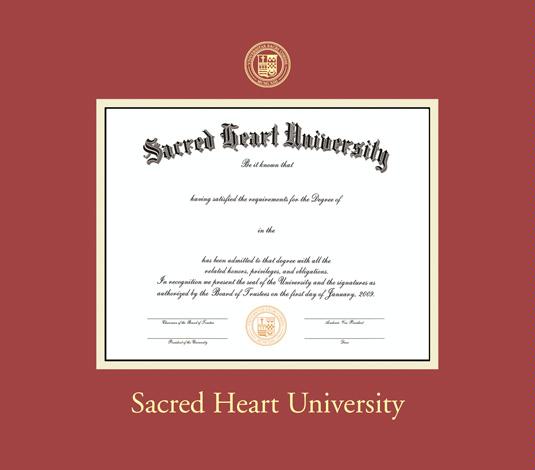 Sacred Heart University Diploma (3/19 to Present) Frame with Red and Cream with Black Core Double Mat and Gold Embossing