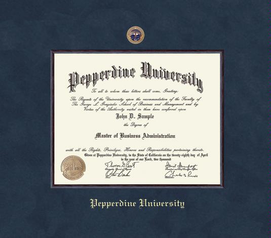 Pepperdine University Diploma - BA/MA/PhD Frame with Medallion and Navy Blue Suede and Wood Fillet Double Mat and Gold Embossing