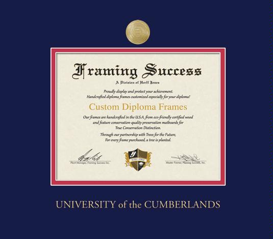 University of the Cumberlands Diploma - Doc. (2019 to Present) Frame with Medallion and Navy Blue and Red Double Mat and Gold Embossing