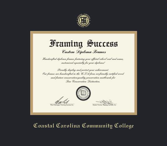 Coastal Carolina Community College Diploma (2019 to Present) Frame with Black and Gold Double Mat and Gold Embossing