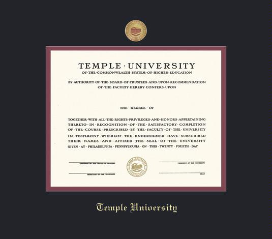 Temple University Diploma - (Pre 2023) BA/MA/PhD & Current Dental Frame with Colored Medallion and Black and Maroon Double Mat and Gold Embossing