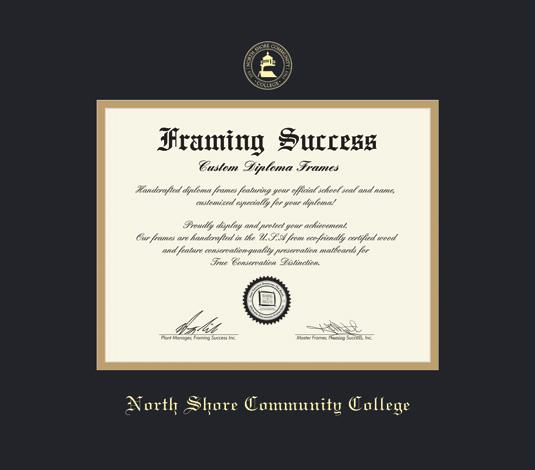 North Shore Community College Diploma Frame with Black and Gold Double Mat and Gold Embossing
