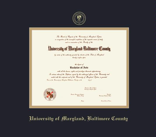 University of Maryland- Baltimore County Diploma (5/19 to Present) Frame with Black and Gold Double Mat and Gold Embossing