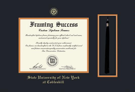 SUNY Cobleskill Diploma Frame with Tassel Cut-out and Black and Orange Double Mat and Gold Embossing