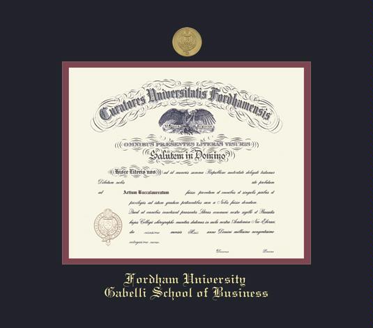 Fordham University Diploma - Business Frame with Medallion and Black and Maroon Double Mat and Gold Embossing