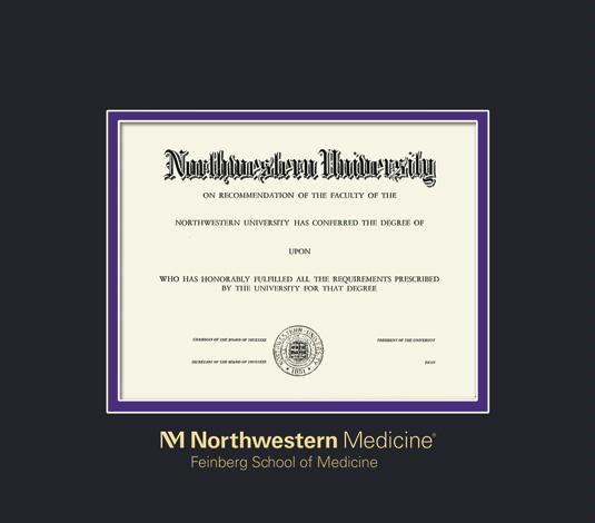 Northwestern University Diploma - Medical (5/19 to Present) Frame with Black and Purple Double Mat and Gold Embossing