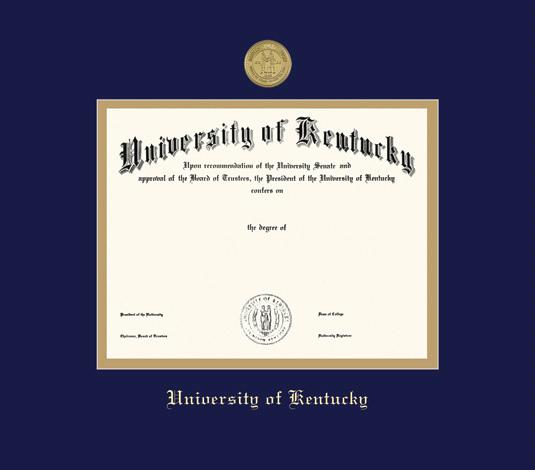 University of Kentucky Diploma - PhD Frame with Medallion and Navy Blue and Gold Double Mat and Gold Embossing