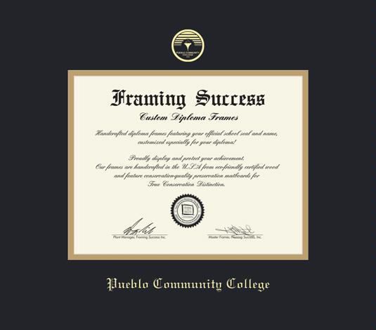 Pueblo Community College Diploma Frame with Black and Gold Double Mat and Gold Embossing
