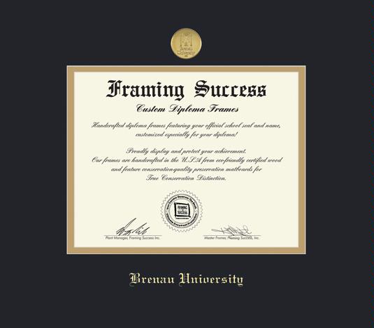 Brenau University Diploma - MA Frame with Medallion and Black and Gold Double Mat and Gold Embossing