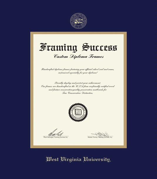 West Virginia University- Downtown Campus Diploma - BA/MA (6/19 to Present) Frame with Navy Blue and Gold Double Mat and Gold Embossing
